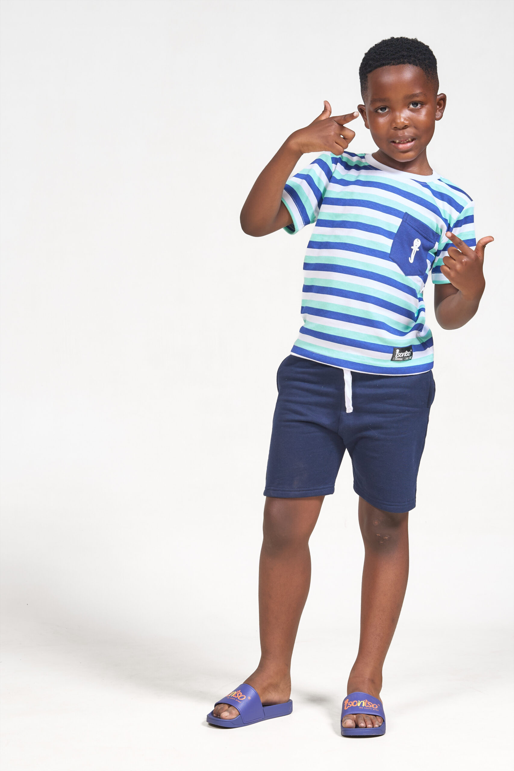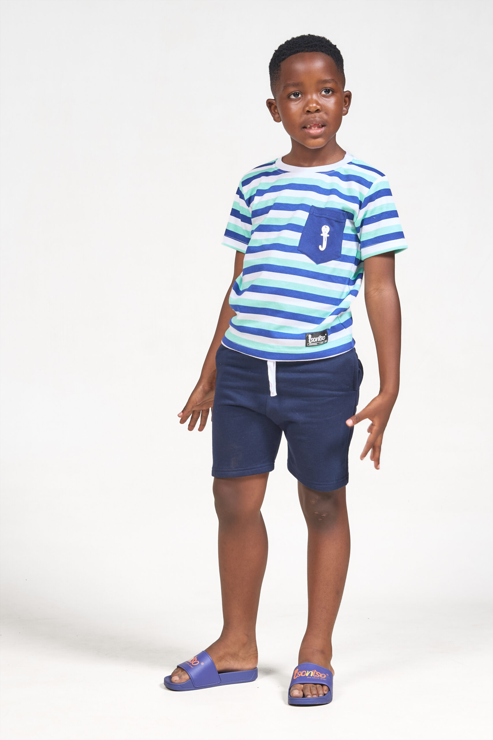 boys set with blue and white stripes